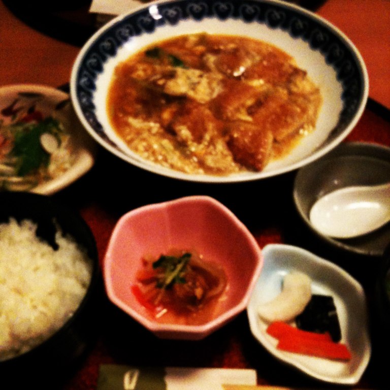 昼食にボリューム満点豚カツ煮定食をいただきましたm(._.)m