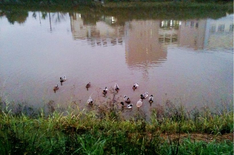 鴨の群れ。ぷよぷよ浮いてた(´ `)
