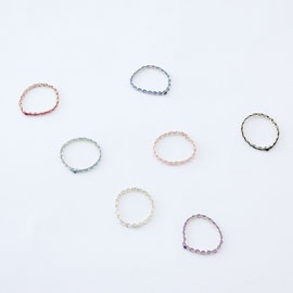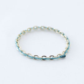 レインボーリング。鎖の間にカラフルな糸が入っててかわいい。重ね付けとかしたいですな。
